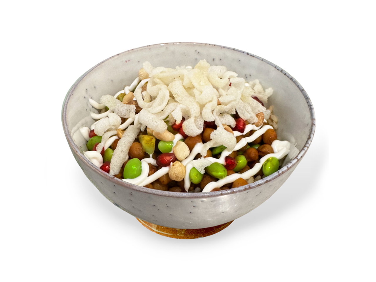 Shrimp, Fisch Sauce, Gurke, Mango, Koriander, Limetten Mayo, Gerostete Erdnüsse, Knusprige Reisnudeln